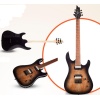 *Marca: CORT *Construccion: atornillada *Cuerpo: Caoba *Top: Ceniza (arenada) *Cuello: Arce duro canadiense *FRETBOAD Pau Ferro *Radio: 15.75″ (400mm) *FRETS 24 *Escala 25.5″ (648mm) *Sintonizadores Die-Cast *Puente rigido con cuerda a traves del cuerpo *Pickups EMG RetroActive Super 77 *Electronica 1 volumen y 1 tono *Selector de recogida de 3 Vias *Hadware: Niquel Negro